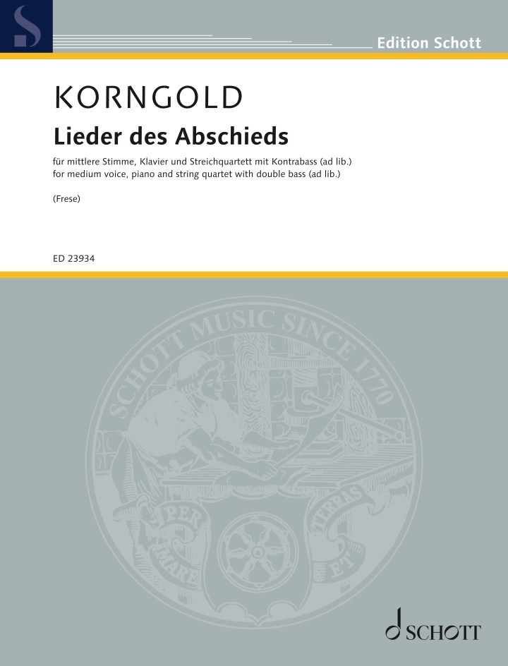 Erich Wolfgang Korngolds (1897–1957) Lieder des Abschieds op. 14 entstanden 1920–1921 direkt nach der Komposition seiner wohl berühmtesten Oper Die tote Stadt und in unmittelbarer Nachbarschaft zum Klavierquintett op. 15. Die enge Verwandtschaft zum Klavierquintett zeigt sich besonders im zweiten Satz des Quintetts, den Korngold selbst als „freie Variationen über die ‚Lieder des Abschieds‘, op. 14“ bezeichnet und dem besonders das dritte Lied Mond, so gehst du wieder auf als Grundlage diente. Korngold orchestrierte seine Lieder recht bald nach der Entstehung der Klavierfassung für großes Orchester.